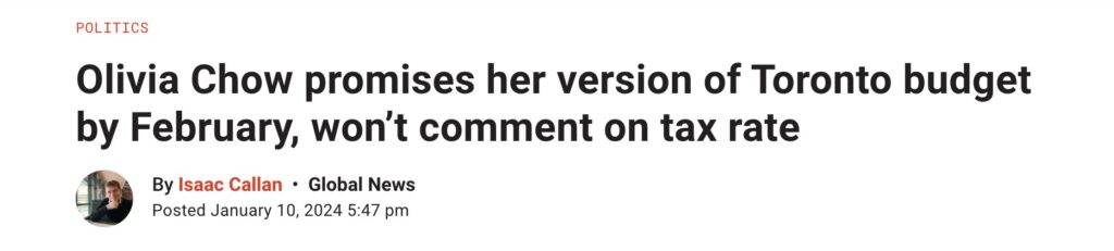 新闻来源:https://globalnews.ca/news/10217050/olivia-chow-tax-increase-toronto-budget/